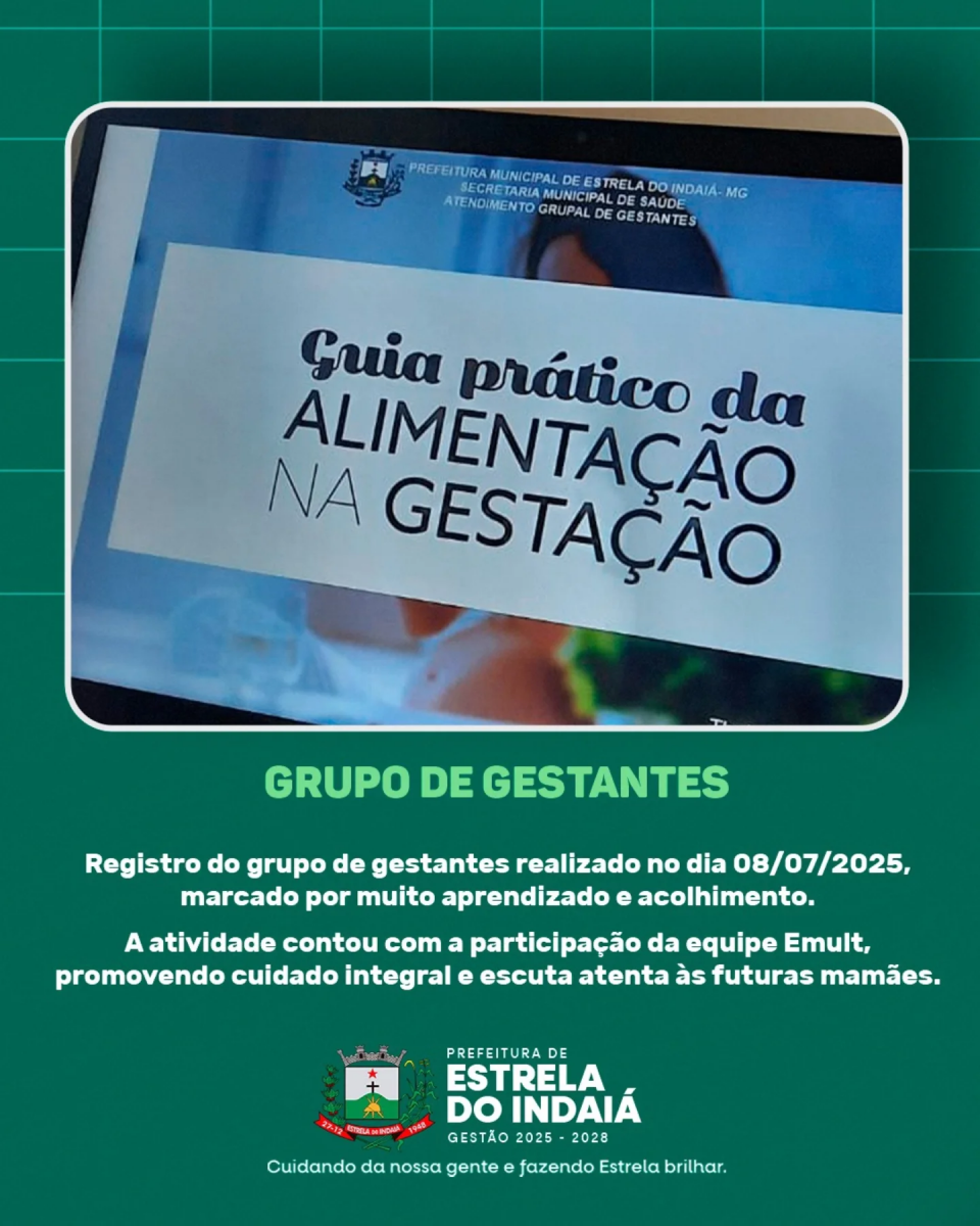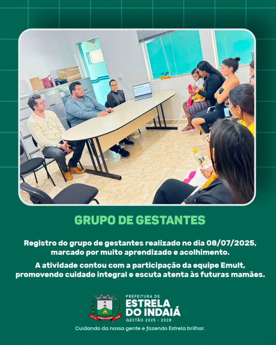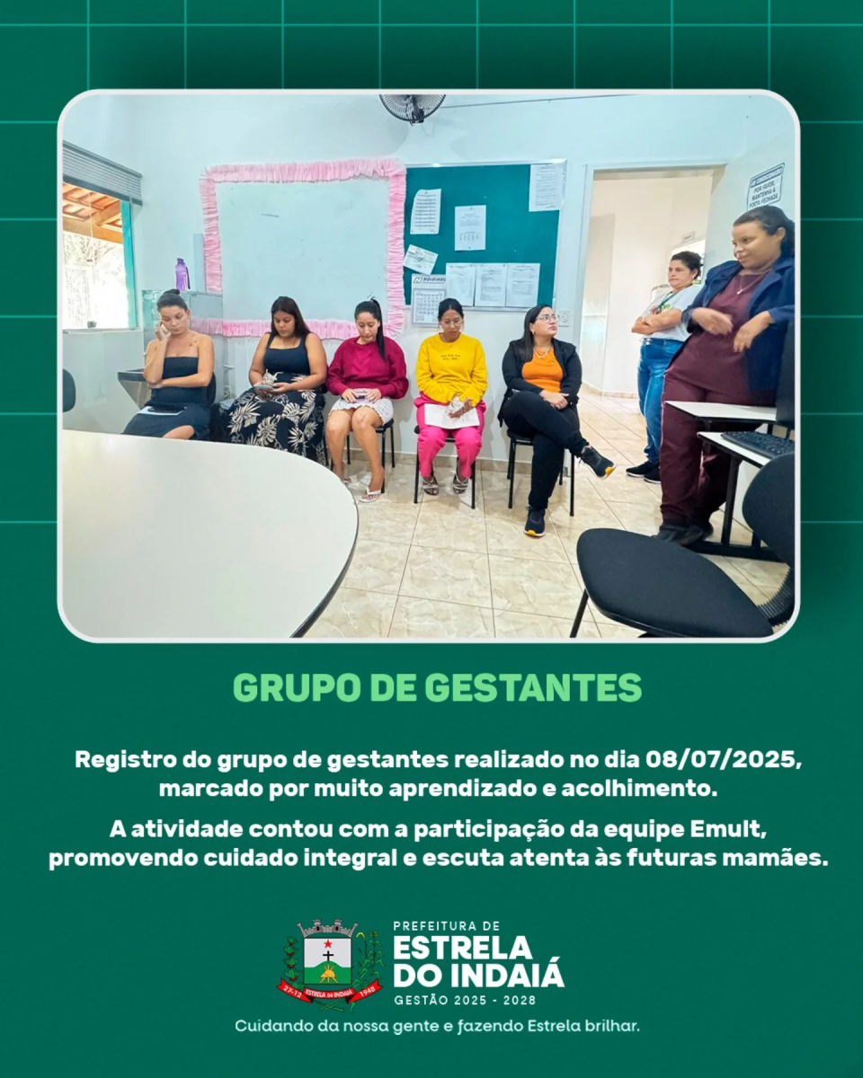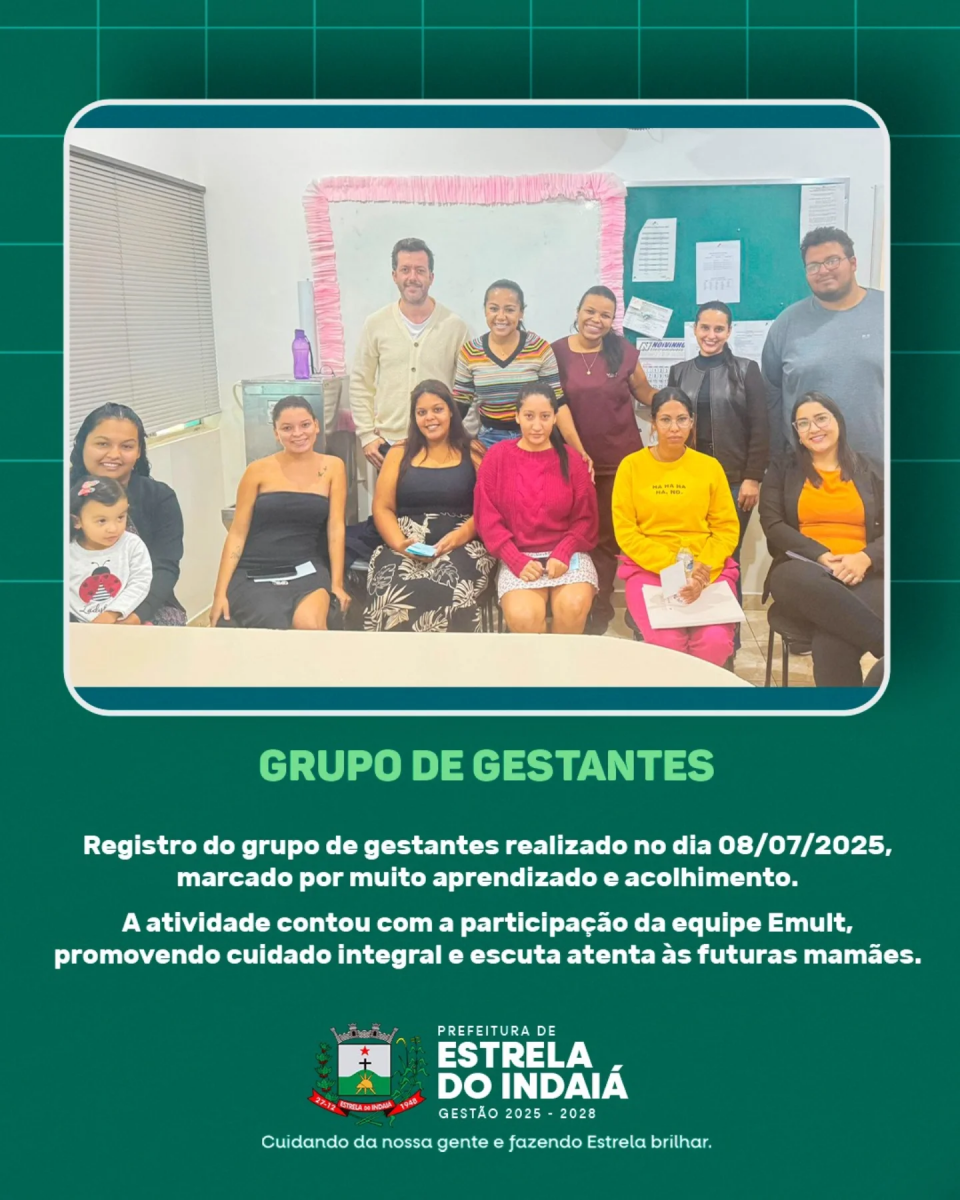 No dia 08 de julho de 2025, a Prefeitura de Estrela do Indaiá realizou mais um encontro do Grupo de Gestantes, um momento especial marcado por aprendizado, escuta e atenção às futuras mamães do nosso município.